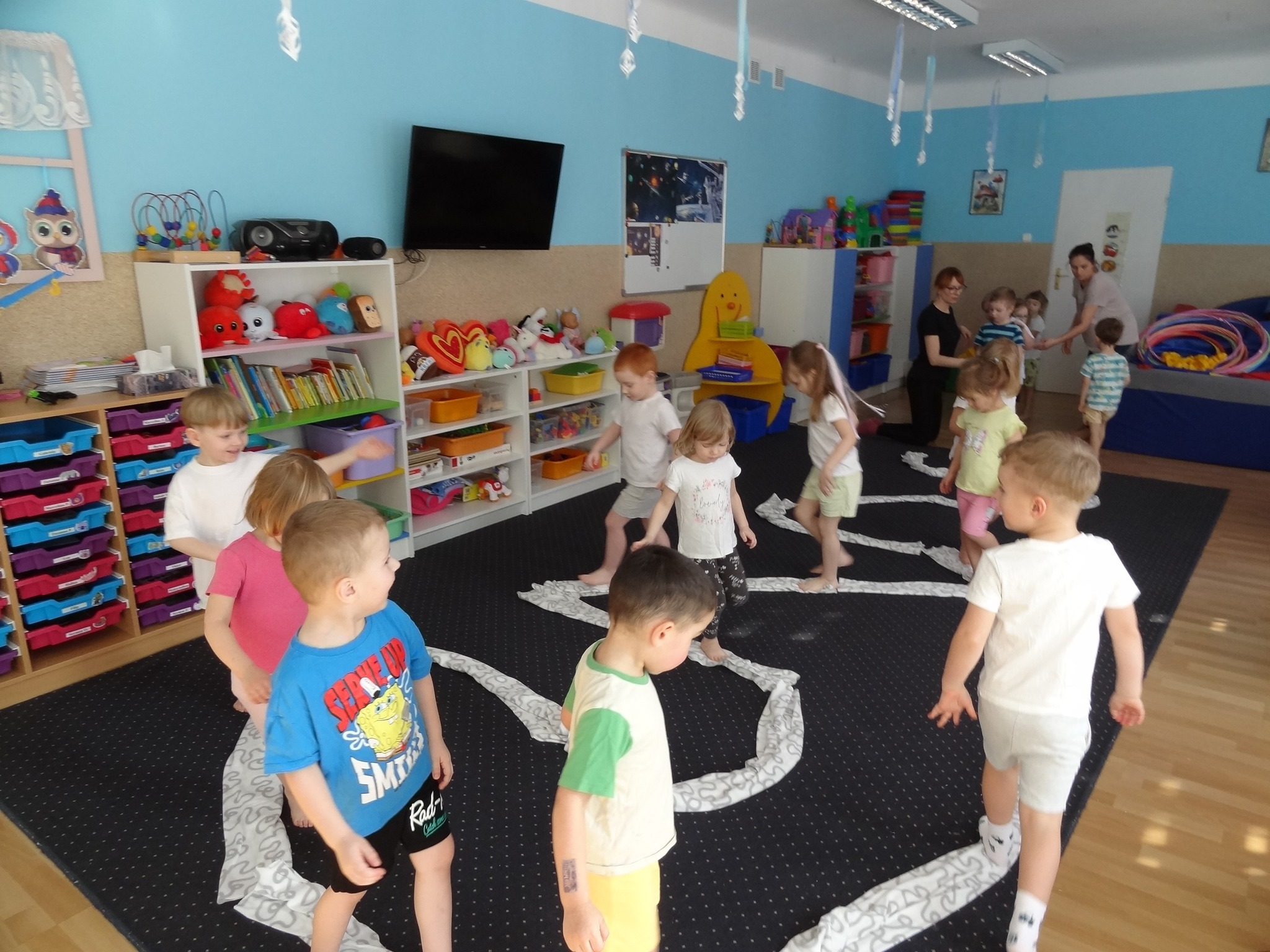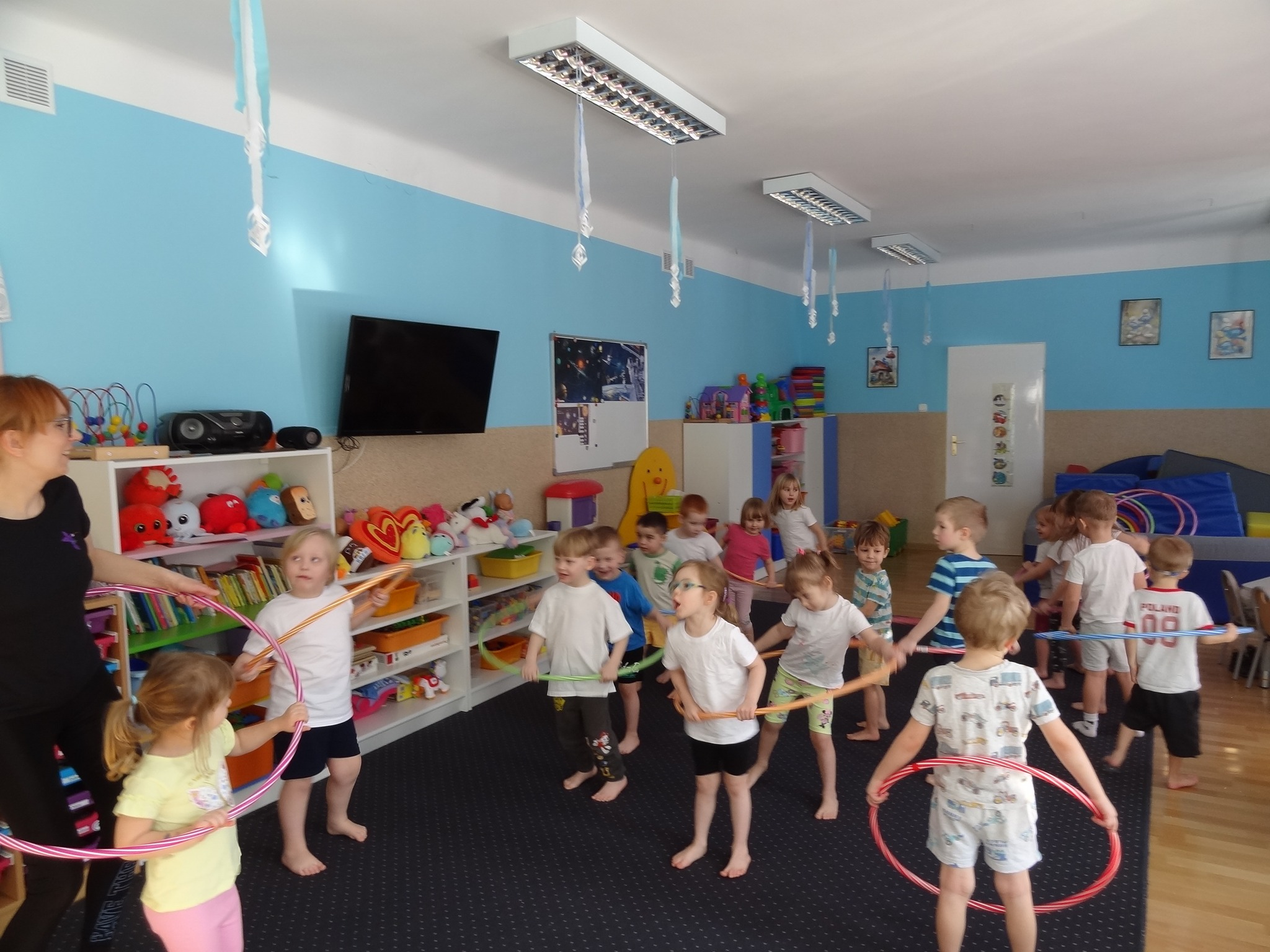 W piątek 20 lutego odbyły się warsztaty ruchowe z elementami Metody Ruchu Rozwijającego Weroniki Sherborne. Zabawy i ćwiczenia o tematyce kosmicznej bardzo podobały się najmłodszym. Podczas zajęć rozwijających sprawność fizyczną wykorzystaliśmy przybory tj.: koce, szarfy, laski gimnastyczne i hula hop.