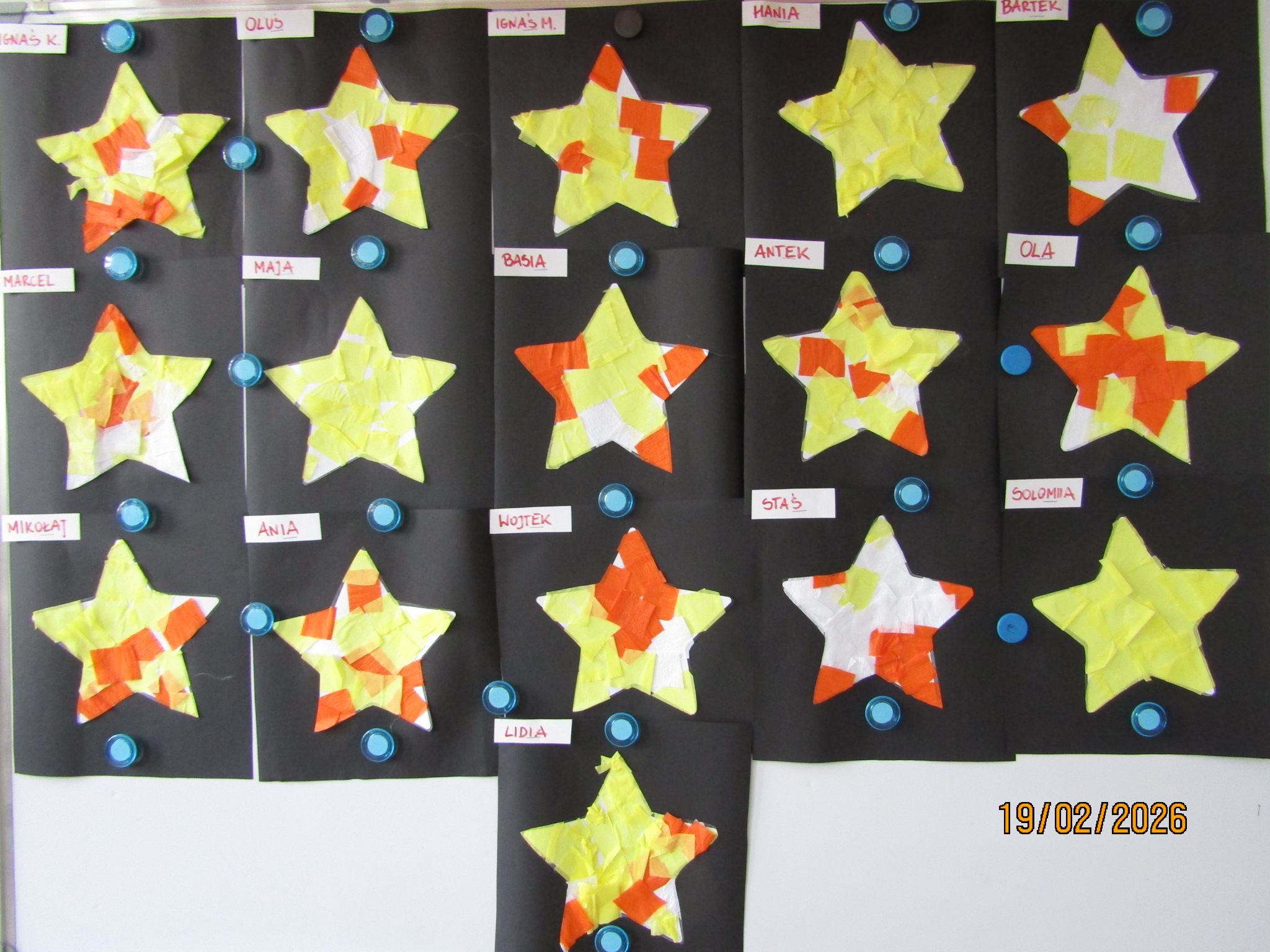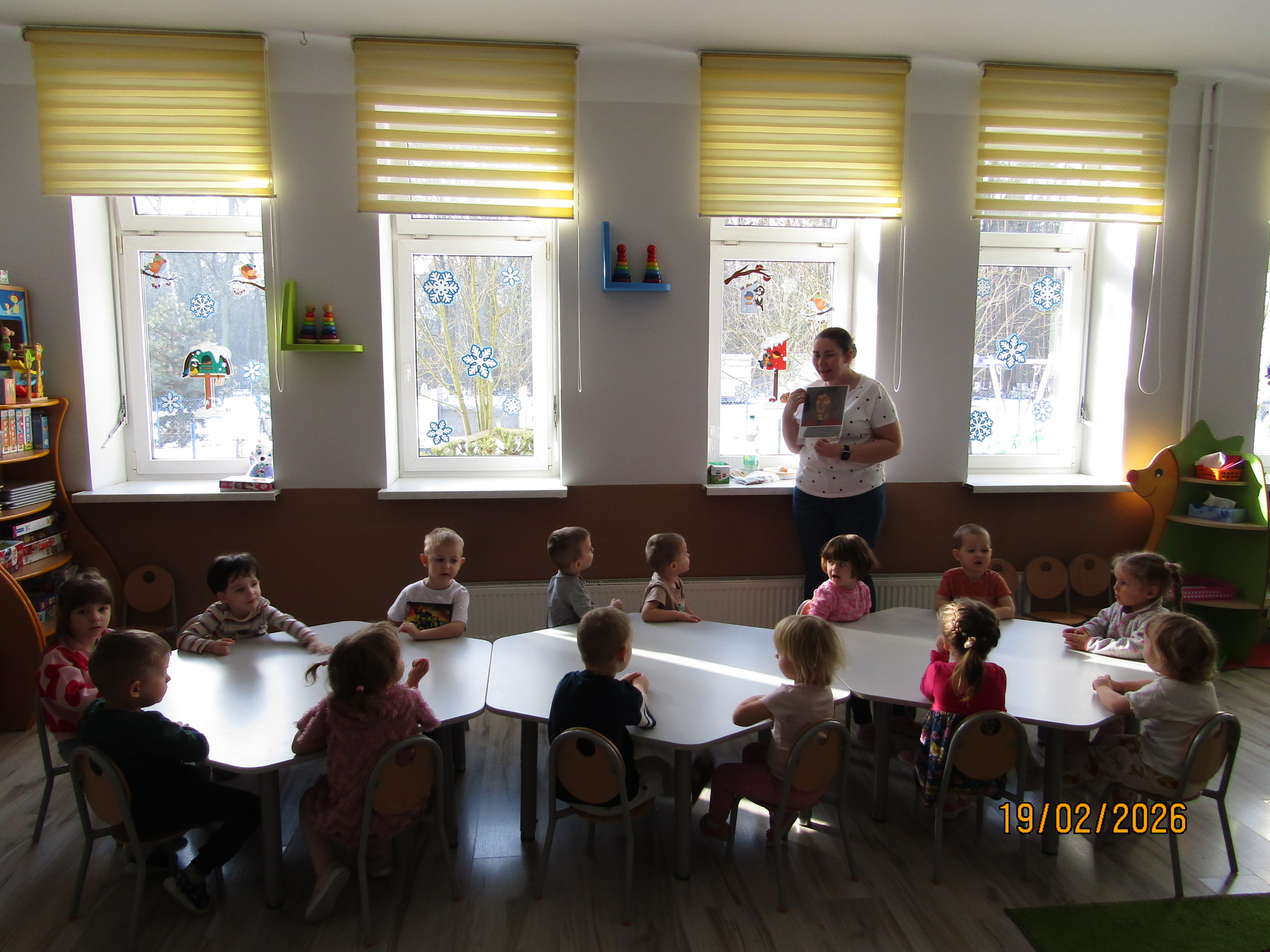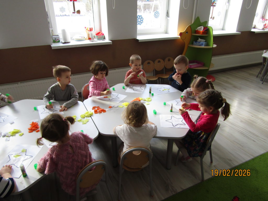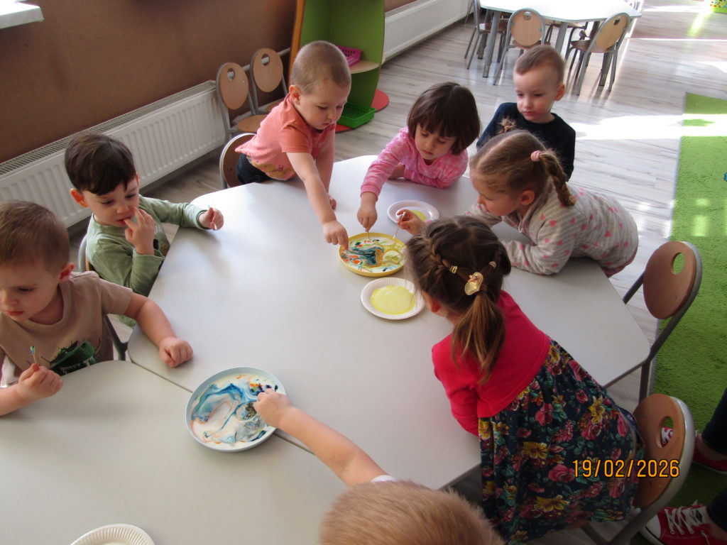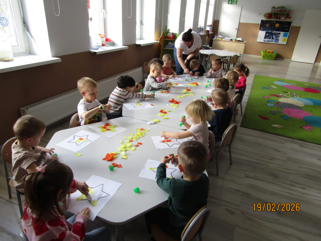 19 lutego dzieci wcieliły się w rolę małych odkrywców 😊 Przedszkolaki w prosty i ciekawy sposób poznały postacie Mikołaja Kopernika oraz Marii Skłodowskiej-Curie, uczestniczyły w zabawie „Słońce i planety”, a także brały udział w eksperymentach „Tańczące rodzynki” 🟣 oraz „Kolorowe czary” 🌈. Przedszkolaki wykonały także pracę plastyczną pt. „Moja gwiazda”. Na zakończenie każdy otrzymał medal „Małego odkrywcy”🧪🏅.