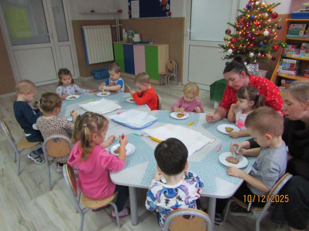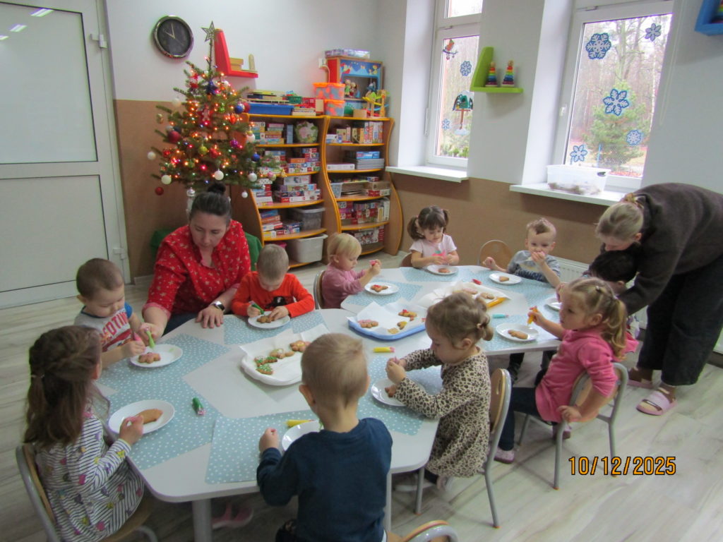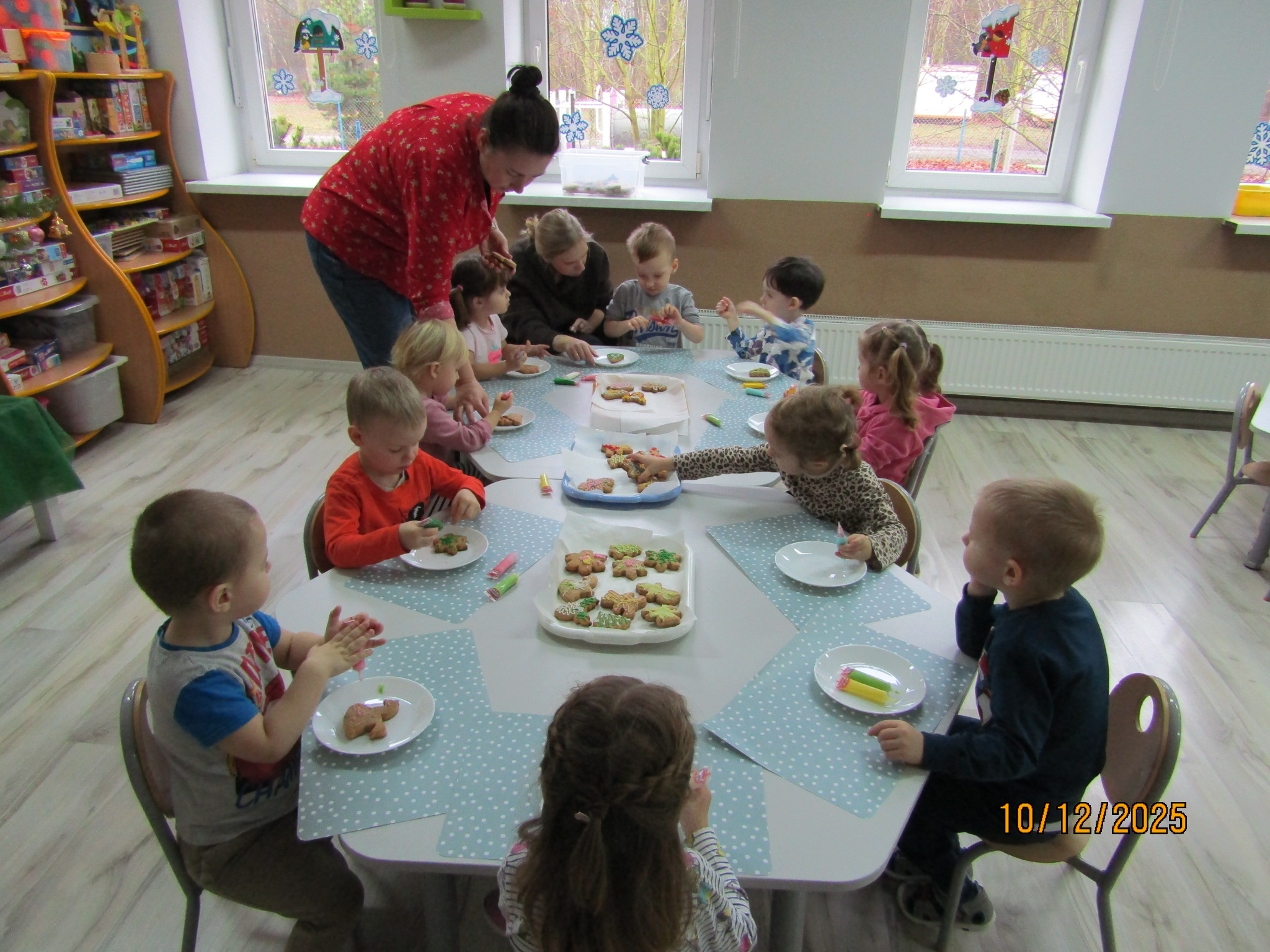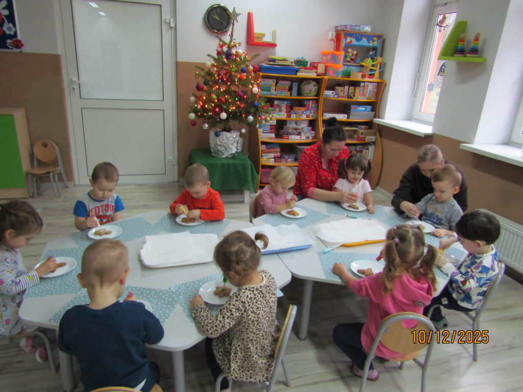Dzieci z wielkim zaangażowaniem piekły i ozdabiały pierniki, wypełniając salę cudownym zapachem przypraw i radością wspólnej pracy. To był czas pełen uśmiechów, kreatywności i pierwszych świątecznych przygotowań ✨🍪