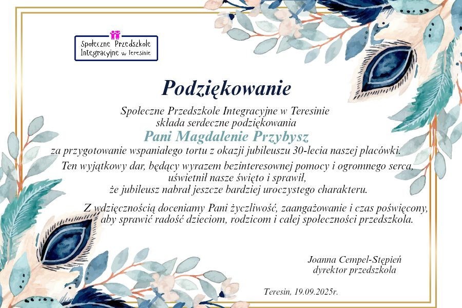 ponad 20 lat doświadczenia | najwyższe standardy edukacyjne | przyjazna atmosfera ZOBACZ OFERTĘ SPOŁECZNE PRZEDSZKOLE INTEGRACYJNE w TERESINIE w TERESINIE SPOŁECZNE PRZEDSZKOLE INTEGRACYJNE ponad 20 lat doświadczenia | najwyższe standardy edukacyjne | przyjazna atmosfera ZOBACZ OFERTĘ w TERESINIE SPOŁECZNE PRZEDSZKOLE INTEGRACYJNE Zapisy do naszego przedszkola są przyjmowane przez cały rok! ZAPISZ DZIECKO w TERESINIE SPOŁECZNE PRZEDSZKOLE INTEGRACYJNE Tu zawsze dużo się dzieje! Uczymy przez zabawę, doświadczenia, warsztaty i wycieczki! AKTUALNOŚCI
