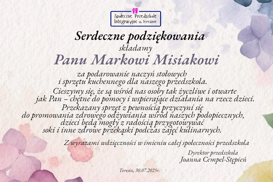 ponad 20 lat doświadczenia | najwyższe standardy edukacyjne | przyjazna atmosfera ZOBACZ OFERTĘ SPOŁECZNE PRZEDSZKOLE INTEGRACYJNE w TERESINIE w TERESINIE SPOŁECZNE PRZEDSZKOLE INTEGRACYJNE ponad 20 lat doświadczenia | najwyższe standardy edukacyjne | przyjazna atmosfera ZOBACZ OFERTĘ w TERESINIE SPOŁECZNE PRZEDSZKOLE INTEGRACYJNE Zapisy do naszego przedszkola są przyjmowane przez cały rok! ZAPISZ DZIECKO w TERESINIE SPOŁECZNE PRZEDSZKOLE INTEGRACYJNE Tu zawsze dużo się dzieje! Uczymy przez zabawę, doświadczenia, warsztaty i wycieczki! AKTUALNOŚCI