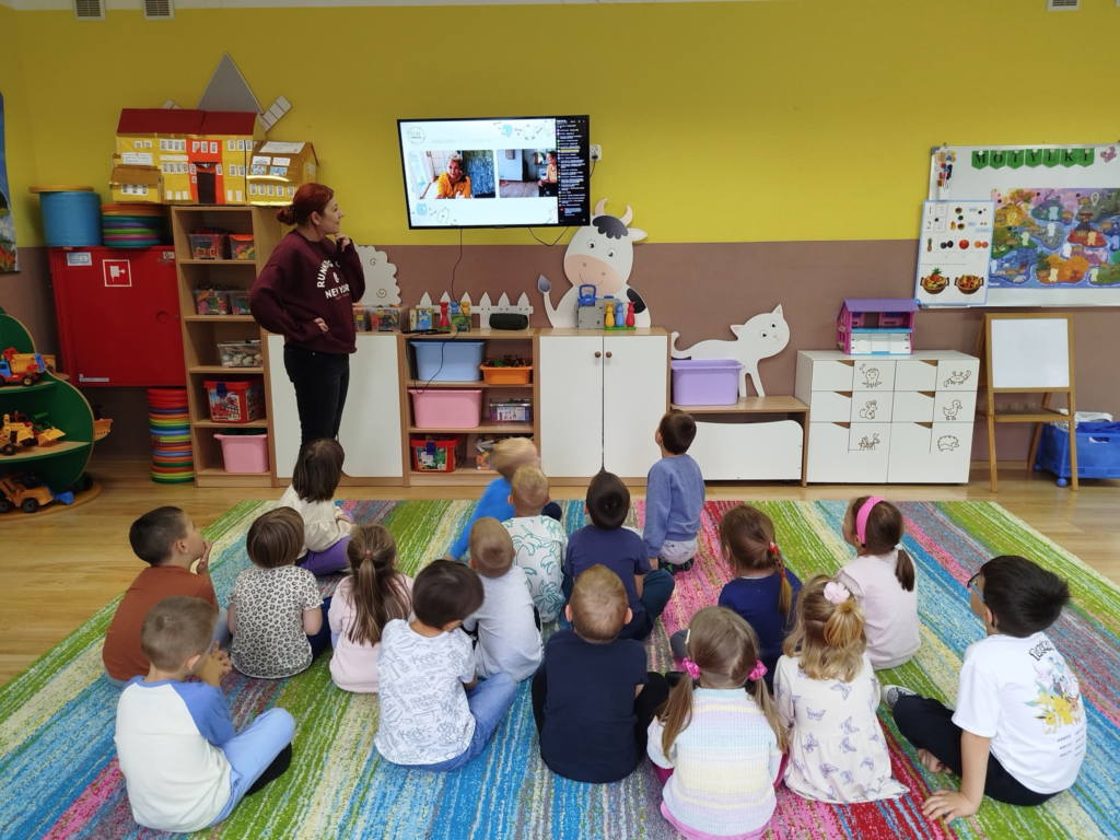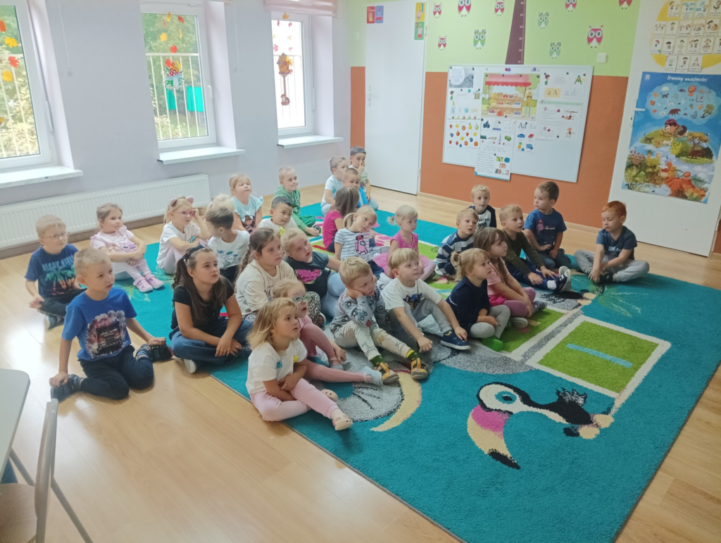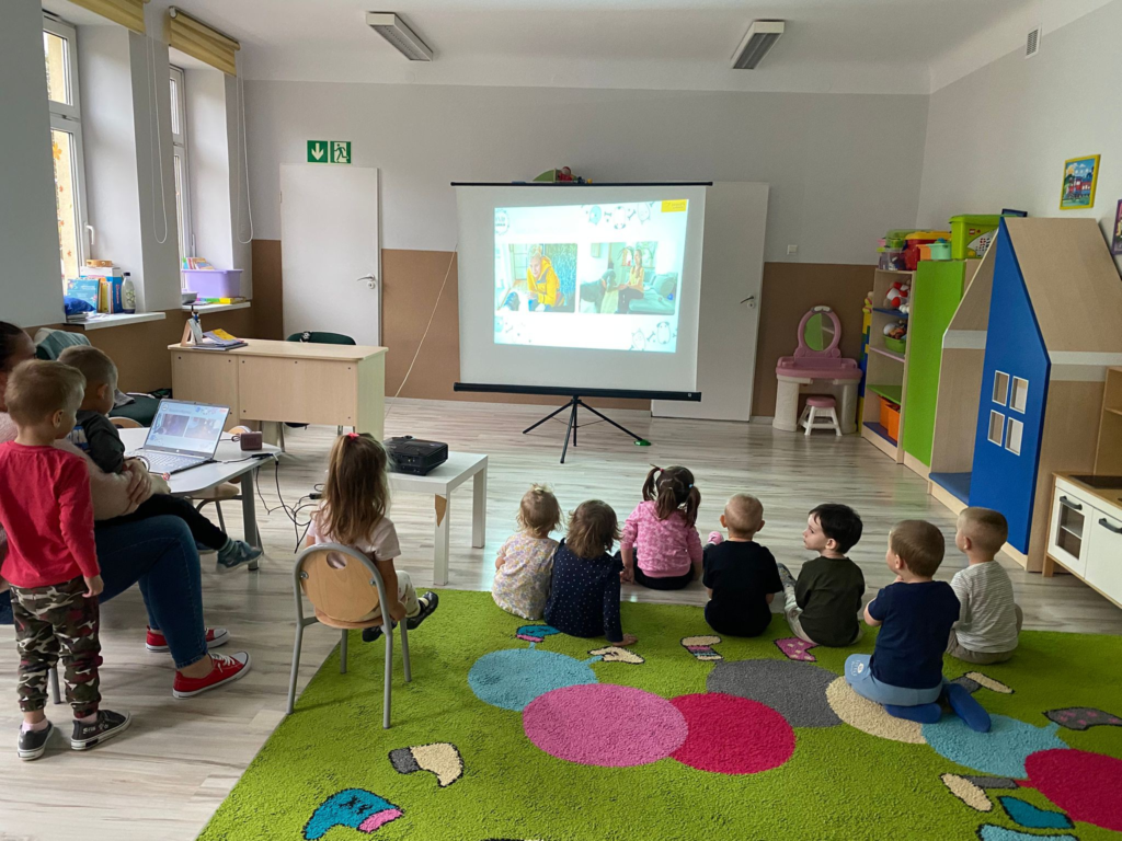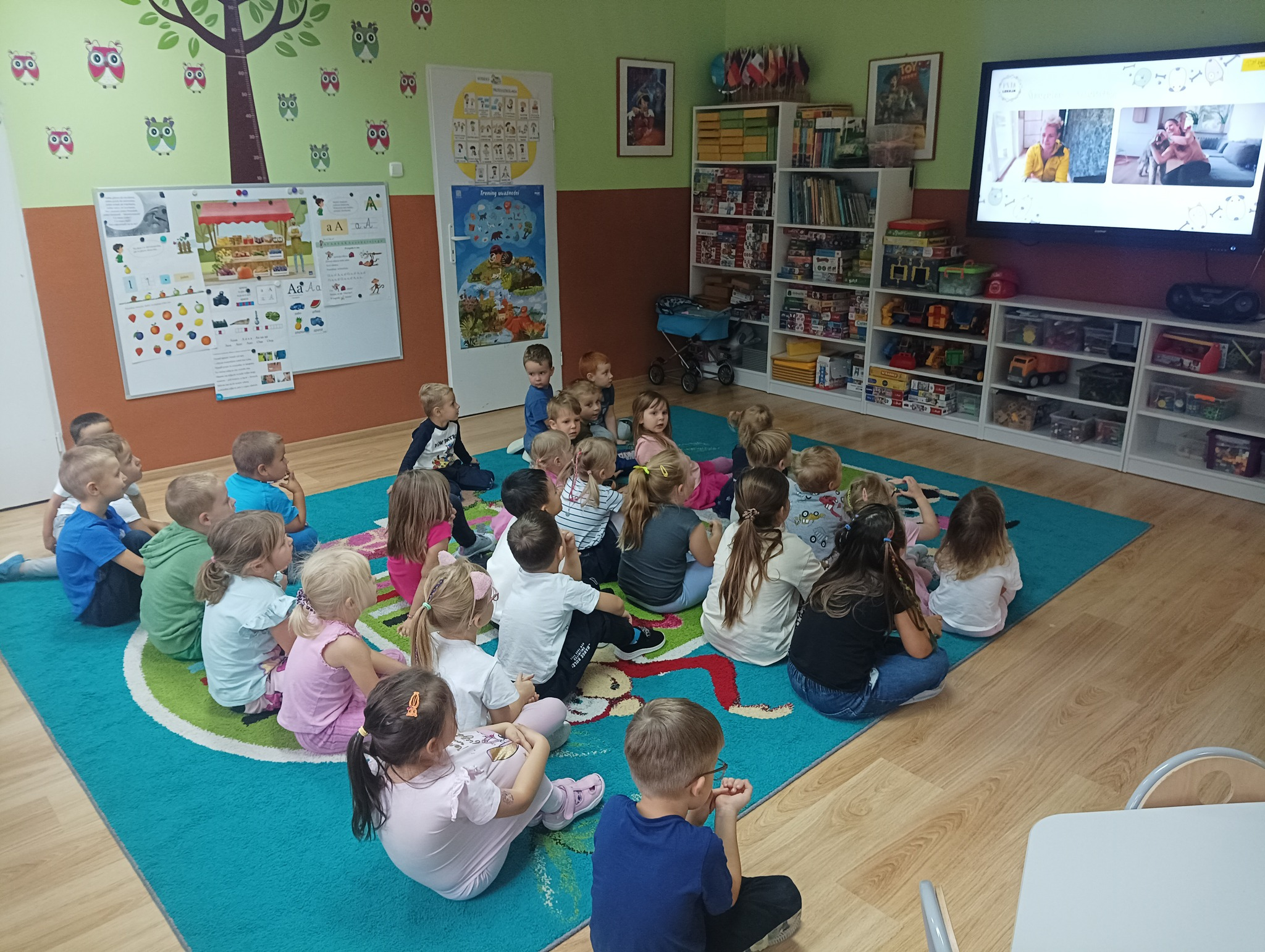 30 września dzieci z grup: Smerfy i Muminki, Biedronki oraz Motylki uczestniczyły w spotkaniu online „Śniadanie z PSYjaciółmi” w ramach programu „Psia lekcja”. Przedszkolaki dowiedziały się jakie są psy, co lubią, czego potrzebują i jak się z nimi zaprzyjaźnić. Panie prowadzące opowiadały o tym, jak ich psy pomagają dzieciom w szpitalach. Hultaj, Holka i Morka pokazały różne umiejętności, sztuczki i wykonały dla dzieci zadania ![]()