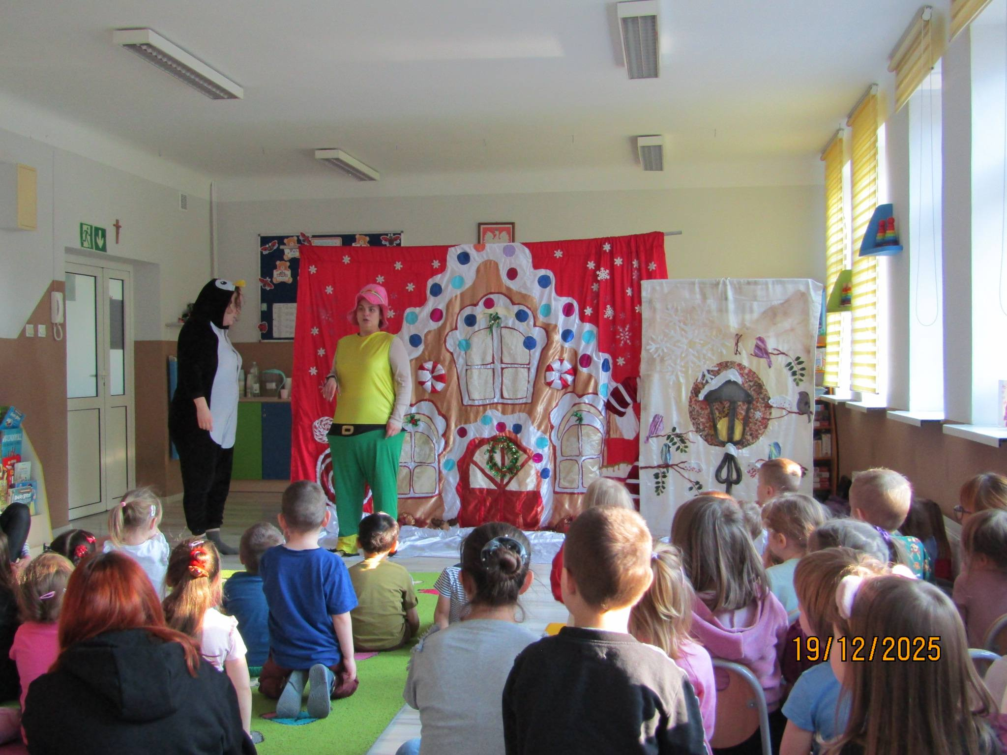 Dzieci aktywnie uczestniczyły w fabule, pomagając bohaterom. Spektakl poruszył tematy odwagi, odpowiedzialności, współpracy i właściwych zachowań, przekazując je w zabawny i zrozumiały sposób. Dziękujemy aktorkom Teatru Magik z Białegostoku ![]()