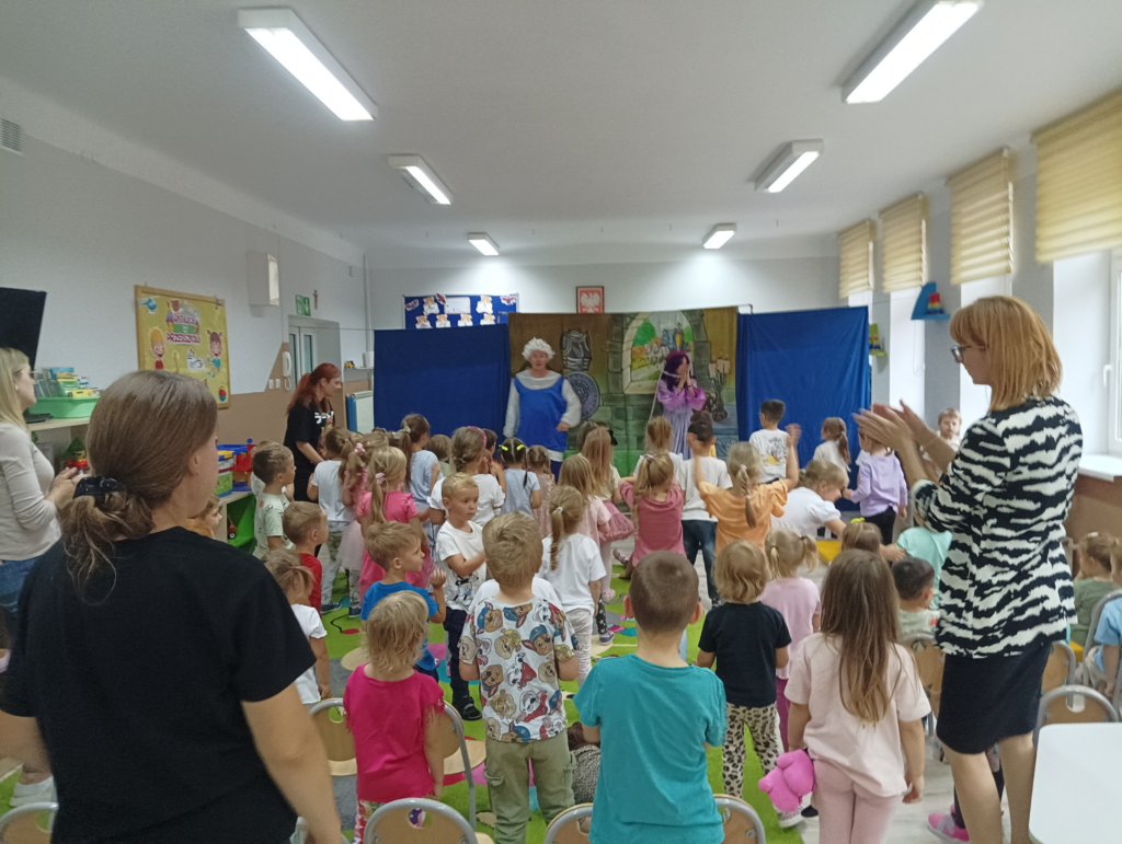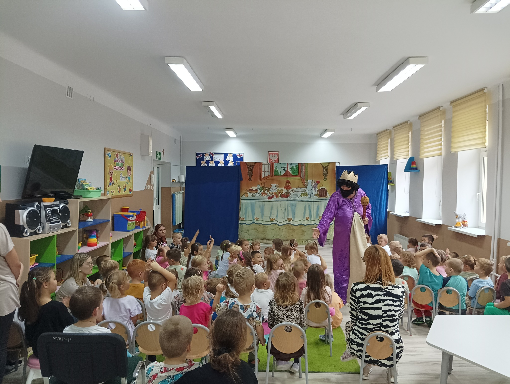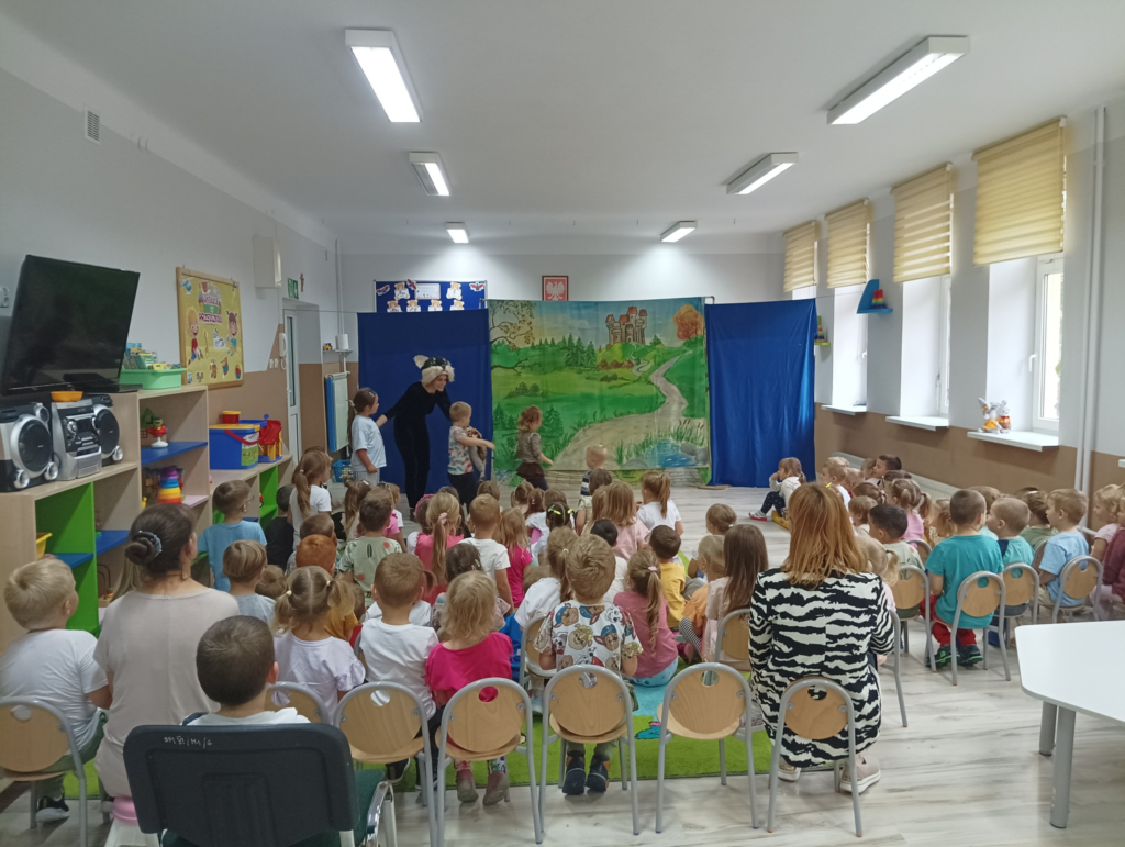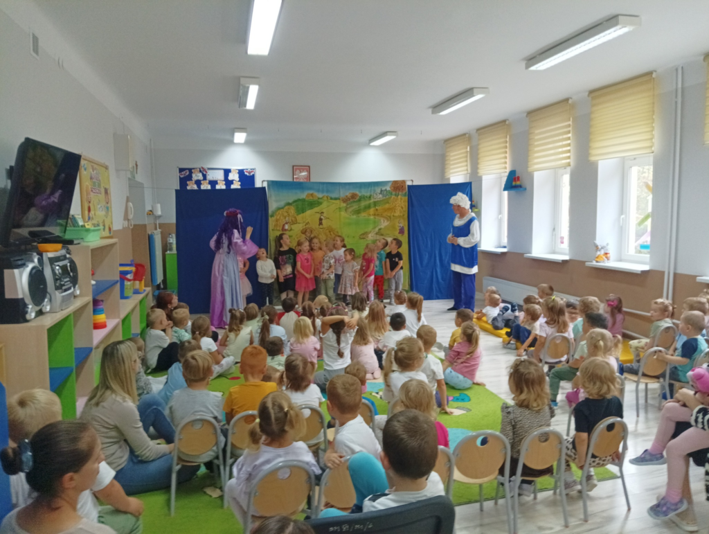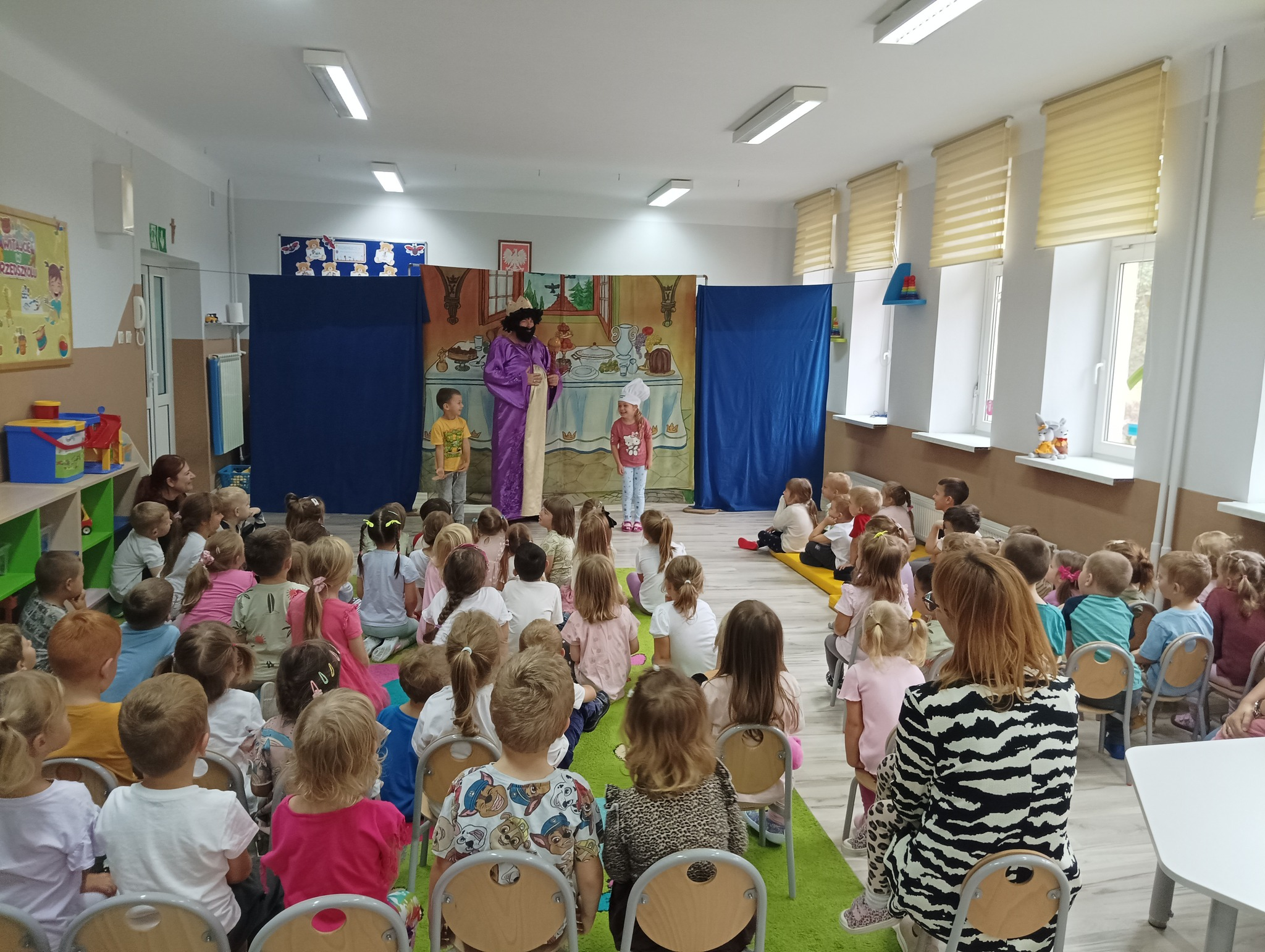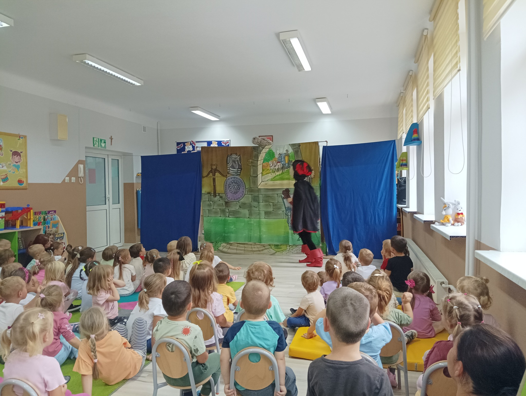 11 września odbyło się pierwsze spotkanie z teatrem. Przedszkolaki zobaczyły przedstawienie teatralne pt. „Kot w butach” 🐱 w wykonaniu aktorów Studia Teatralnego Krak-Art. Dziękujemy za wizytę 🙂🙂🙂