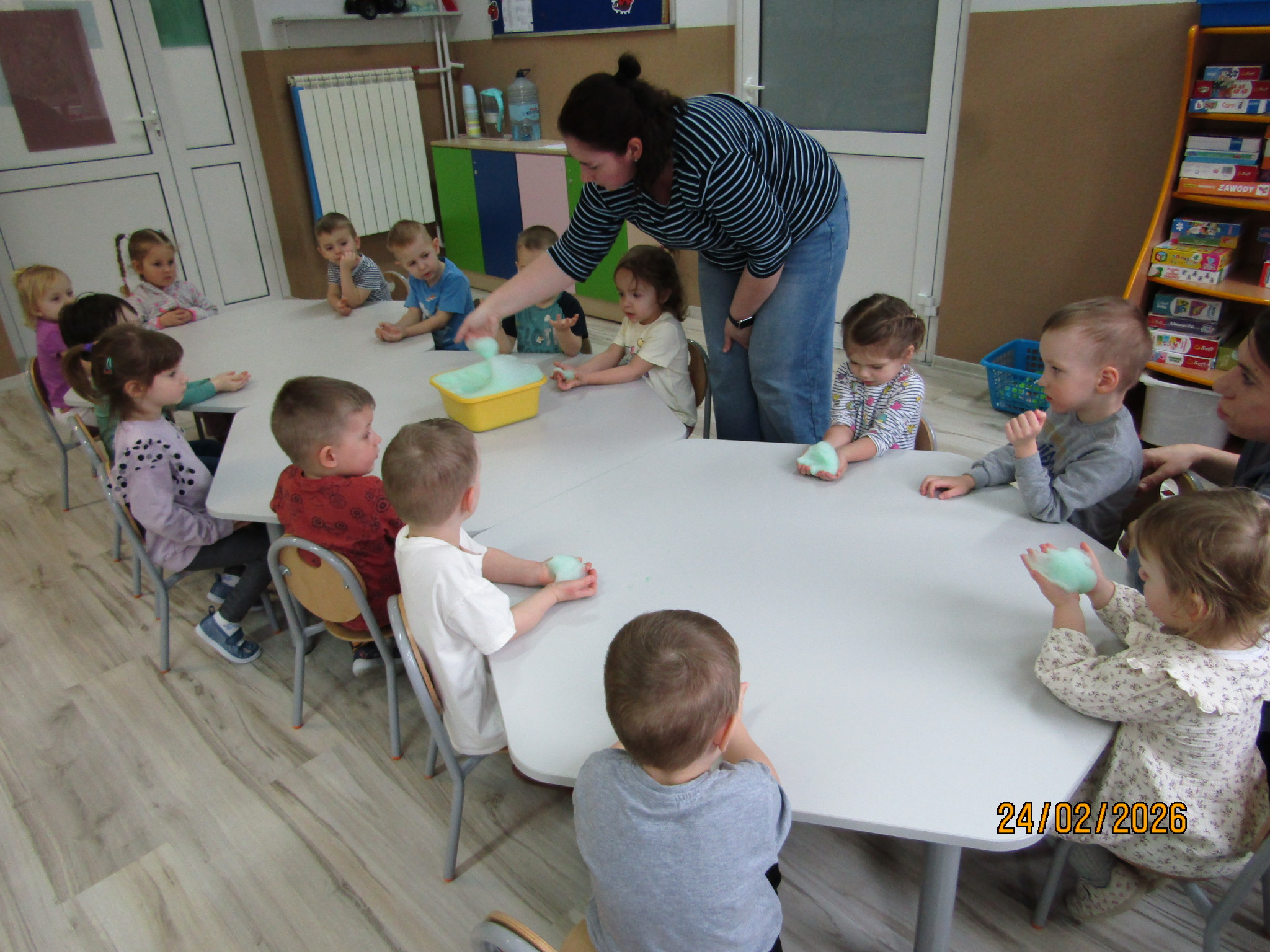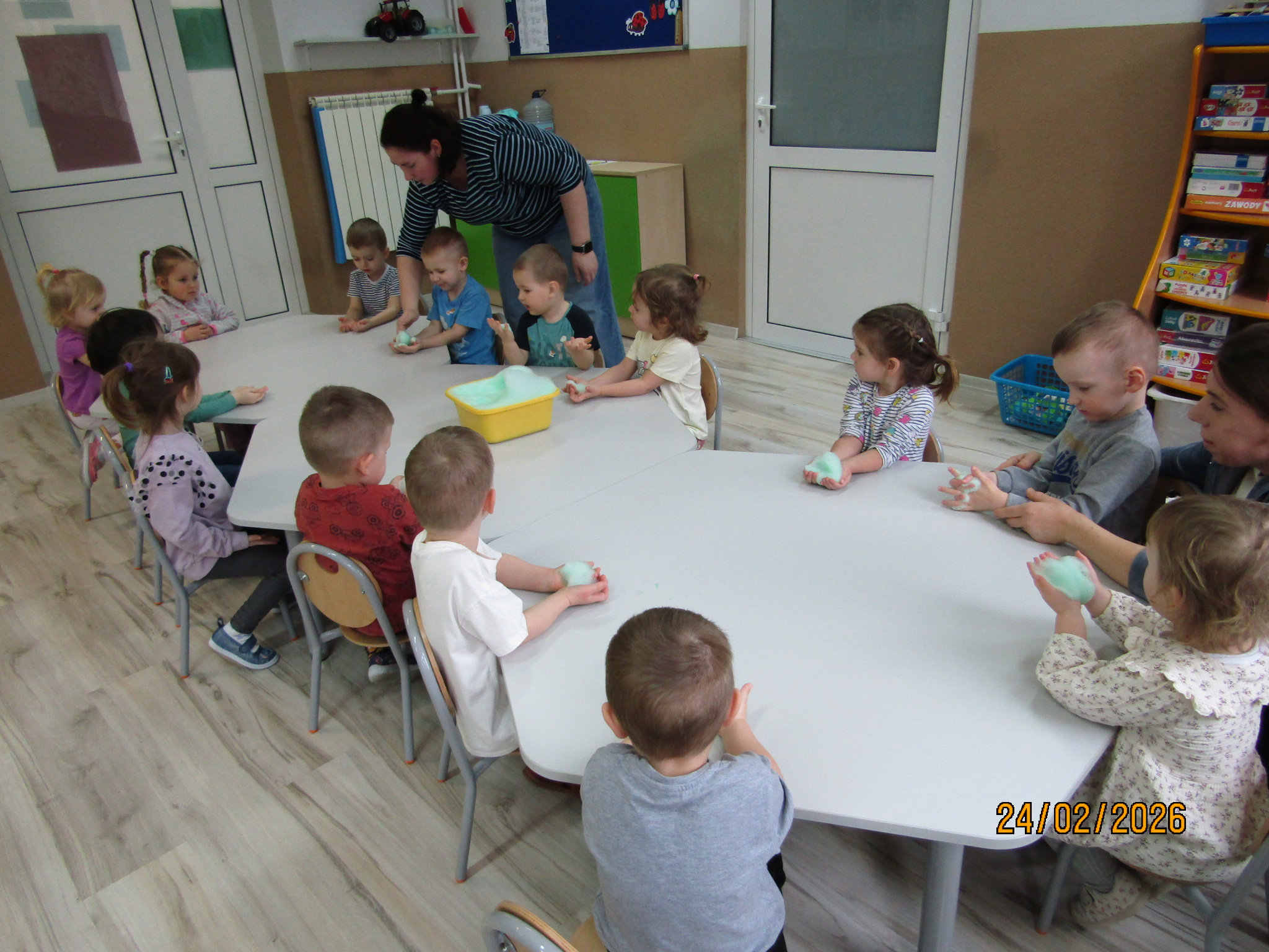 a podczas zabawy sensorycznej z pianą rozwijaliśmy zmysł dotyku i swobodną ekspresję.