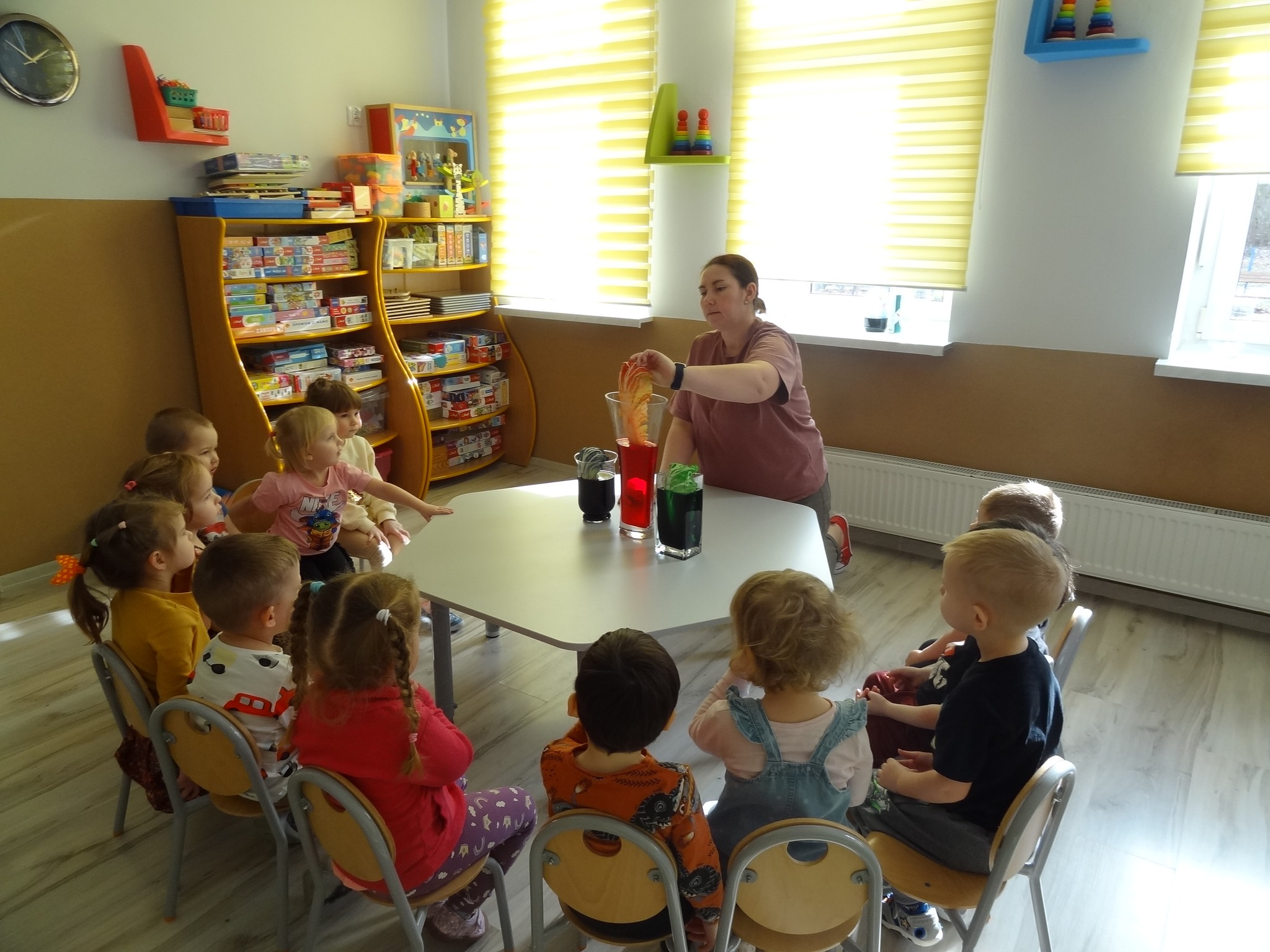 W minionym tygodniu w naszej grupie spokojnie i z dużą ciekawością odkrywaliśmy świat poprzez doświadczenia i zabawy badawcze. Eksperymenty realizowaliśmy stopniowo – w ciągu całego tygodnia – tak, aby dzieci miały czas na obserwację, zadawanie pytań i wyciąganie własnych wniosków ![]()