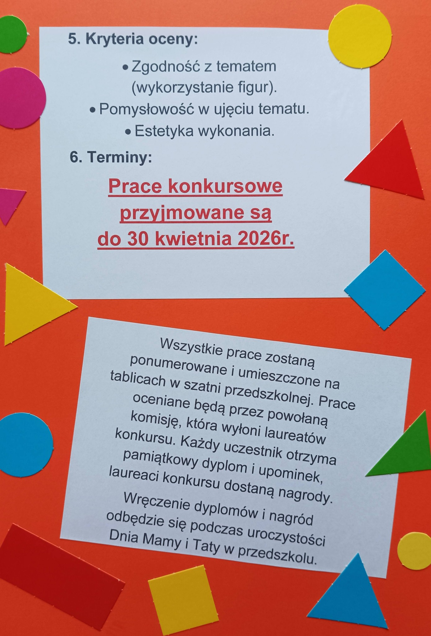 • Praca musi składać się wyłącznie lub w przeważającej części z figur geometrycznych (koło, kwadrat, trójkąt, prostokąt).
